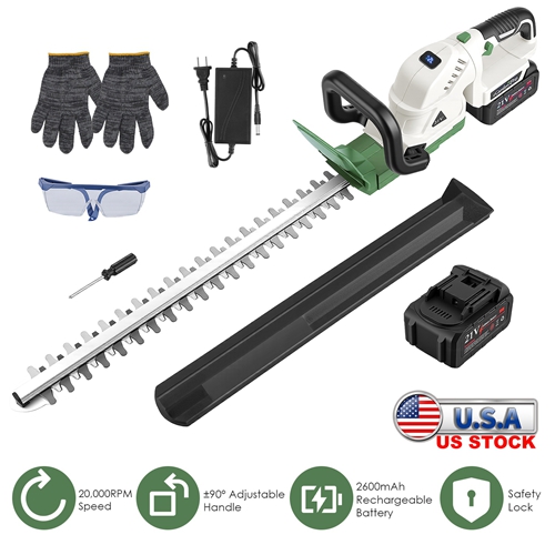 Experience the ultimate all-in-one cordless trimmer designed for power, precision, and safety. With a robust 20,000 RPM motor and a hyper-cut dual-action steel blade, it slices through thick branches and hedges effortlessly. The adjustable handle offers ±90° rotation for hard-to-reach spots, while the secure two-hand operation and included safety gear keep you protected. Enjoy up to 60 minutes of cordless runtime with its rechargeable 2600mAh battery--no cords, no limits. Perfect for gardeners who demand performance and convenience in one tool!